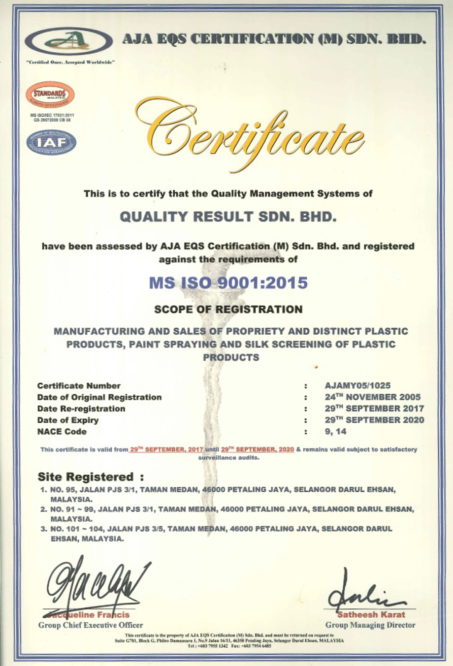 Quality Result Sdn. Bhd. was incorporated on 19th March 1992 as private limited company. The company is principally engaged in manufacturing and sales of injection moulded plastic products and other plastic related business activities.